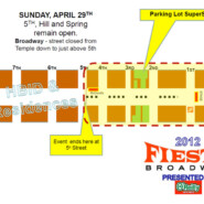 – Broadway between 3rd St. & 5th St. will be closed: 7pm Saturday April 28th – 5am Monday April 30th