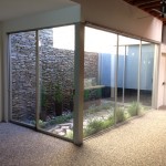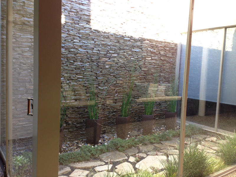 * Garden Patio with rock wall and water fountain